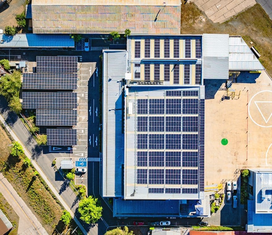 Proyecto implementado para empresa ESCO, realizado en las instalaciones de empresa de la industria aeronáutica. En este proyecto los paneles están distribuidos en los techos y estacionamientos de la empresa